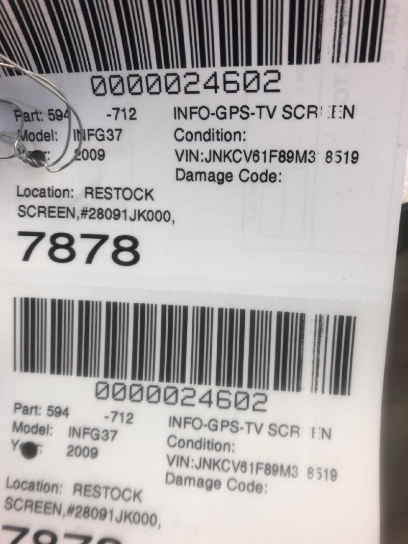 2009 INFINITI G37 Part:594 Info GPS TV Screen SCREEN,#28091JK000, 10000024602
