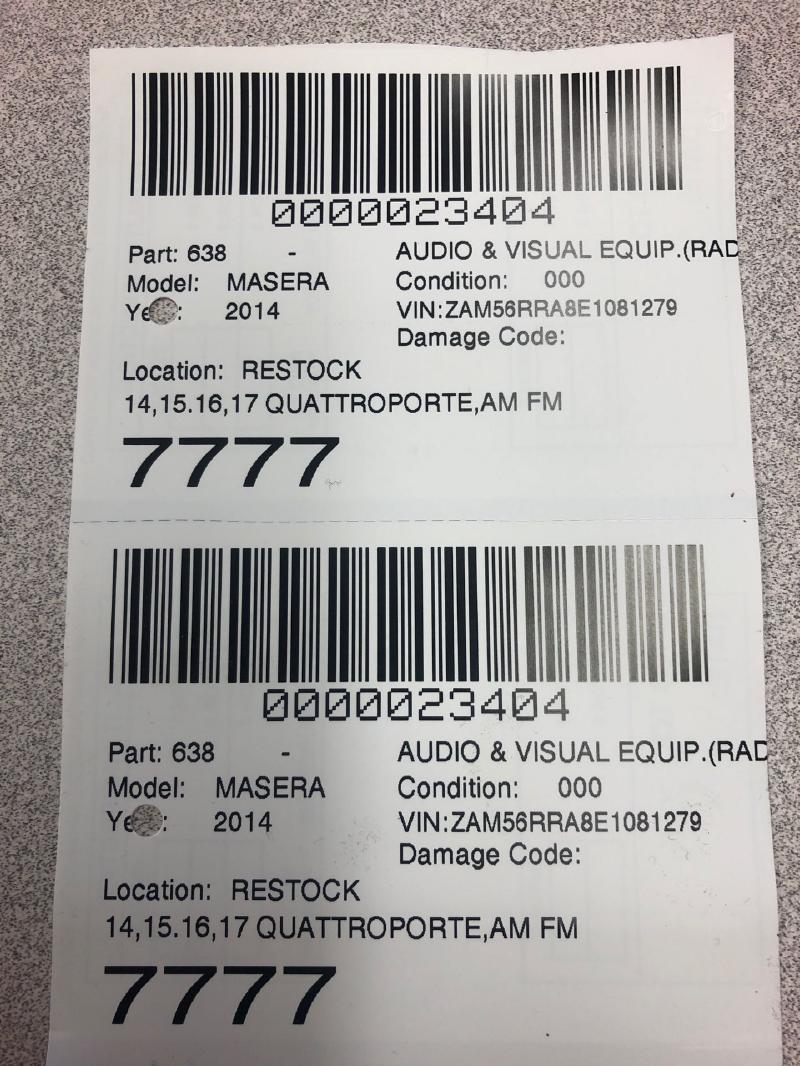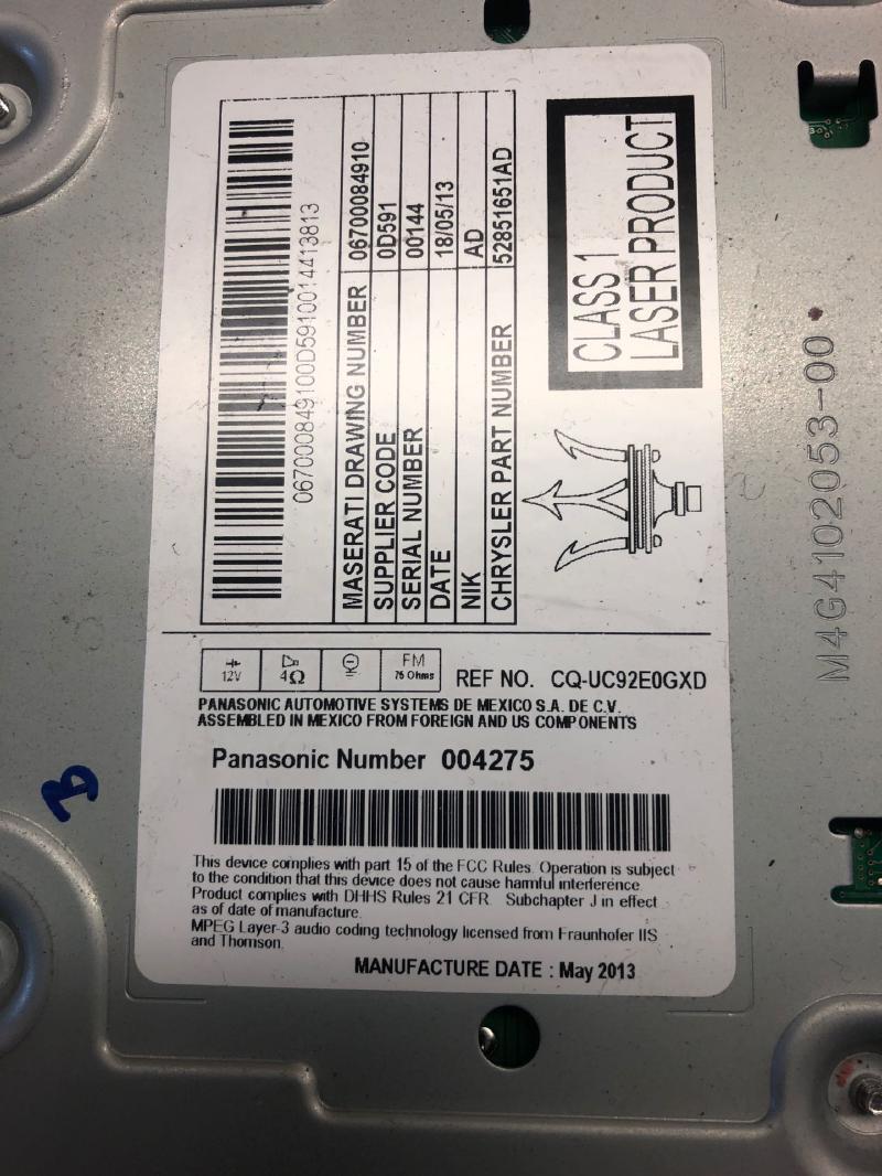 2014 MASERATI MOTORS MASERATI QUATTROPORT Part:638 Radio Audio 14,15.16,17 QUATTROPORTE,AM FM RADIO RECIEVER HEAD 10000023404