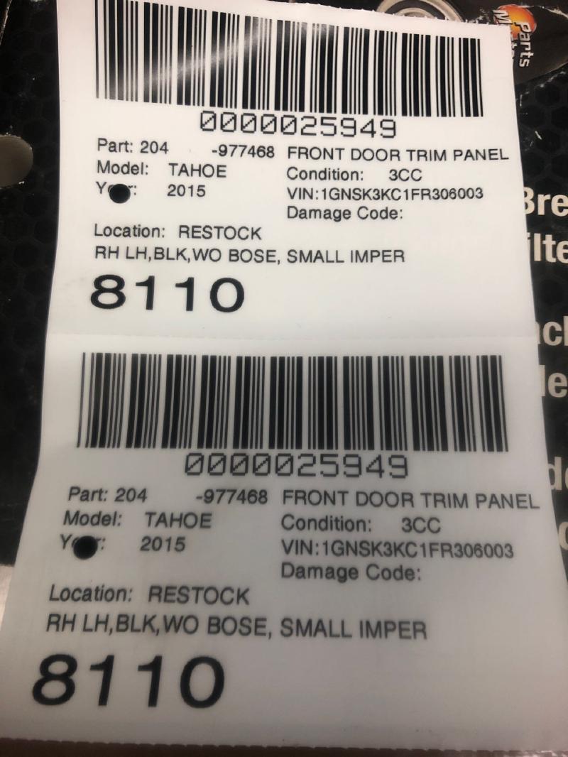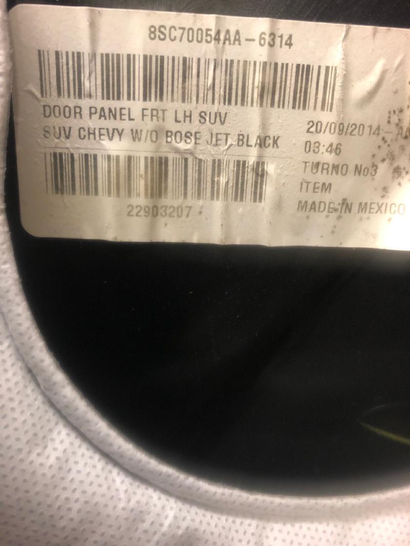 2015 CHEVROLET TAHOE Part:204 Trim Panel Front Door LH,BLK,WO BOSE, SMALL IMPERFECTION LOW,OEM# 229032 10000025949