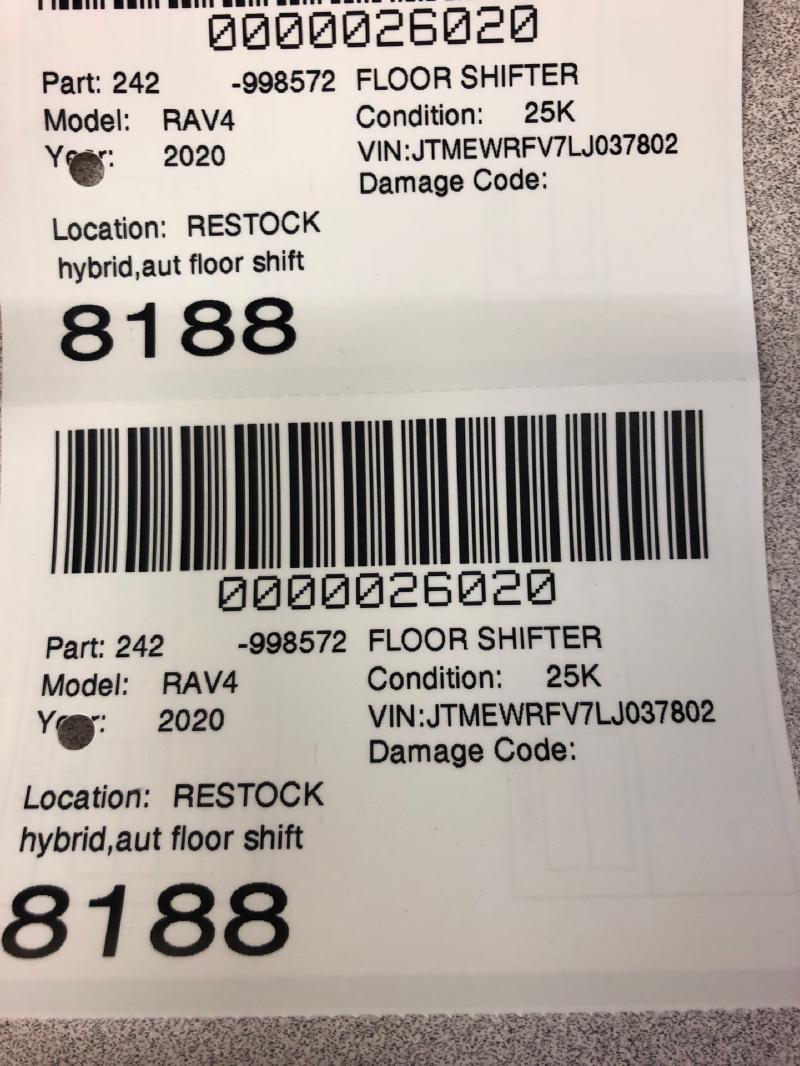 2020 TOYOTA RAV-4 Part:242 Transmission Shift Assembly Hybrid,aut Floor Shift 10000026020