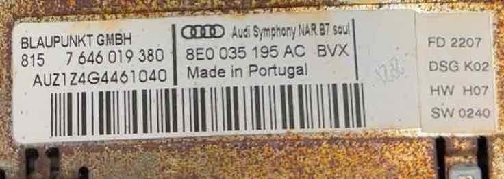 AUDI AUDI A4 2006 2007 2008 Exc. Conv Receiver, W/o Navigation Screen AM-FM-stereo, (Symphony II Sound System), W/o Cassette Part:638 Radio Audio Exc. Conv; Recvr, W/o Nav Screen; AM-FM-stereo, Sy