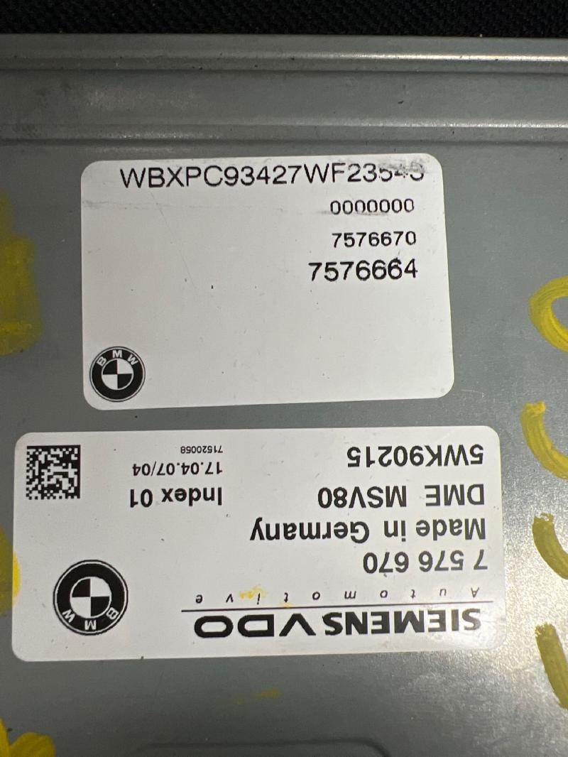 BAVARIAN MOTOR WORKS BMW 328i 2009 2010 Electronic Control Module MSV80.1 Module Type Part:590 Engine Control Module Electronic Control Module, (3.0L), From 3/07