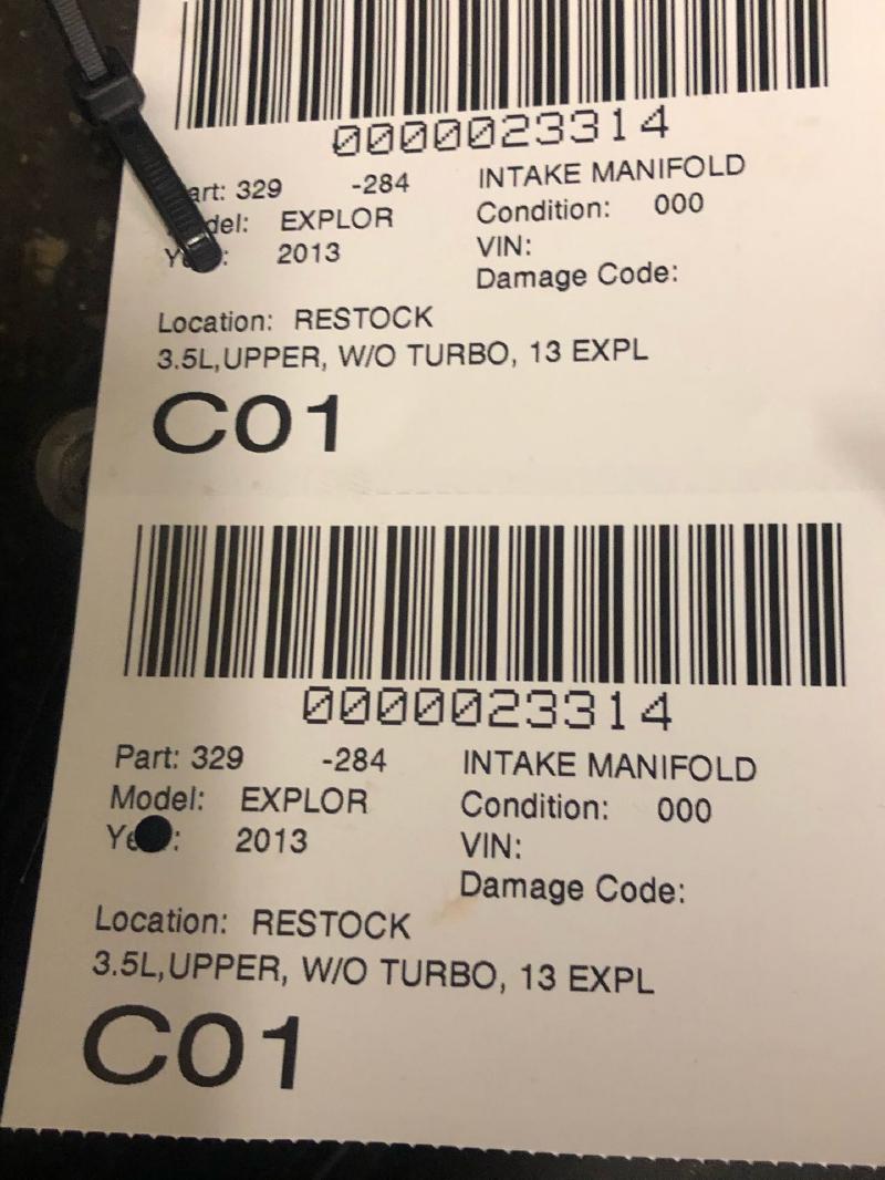 FORD MKX 12 (3.7L), Upper, Thru 01/01/12 Part:329 Intake Manifold 3.5L,UPPER, W/O TURBO, 13 EXPLORER
