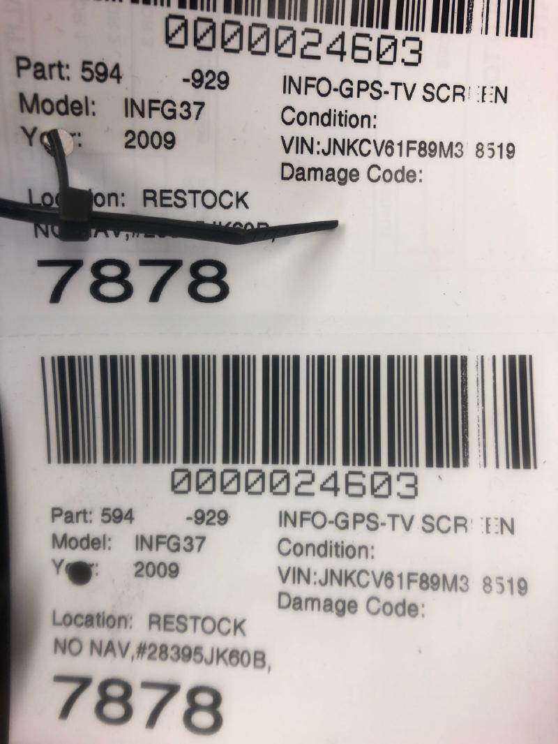 INFINITI INFINITI G37 09 Sdn, Display Screen Control (under Screen), W/o Navigation System Part:594 Info GPS TV Screen NO NAV,#28395JK60B,