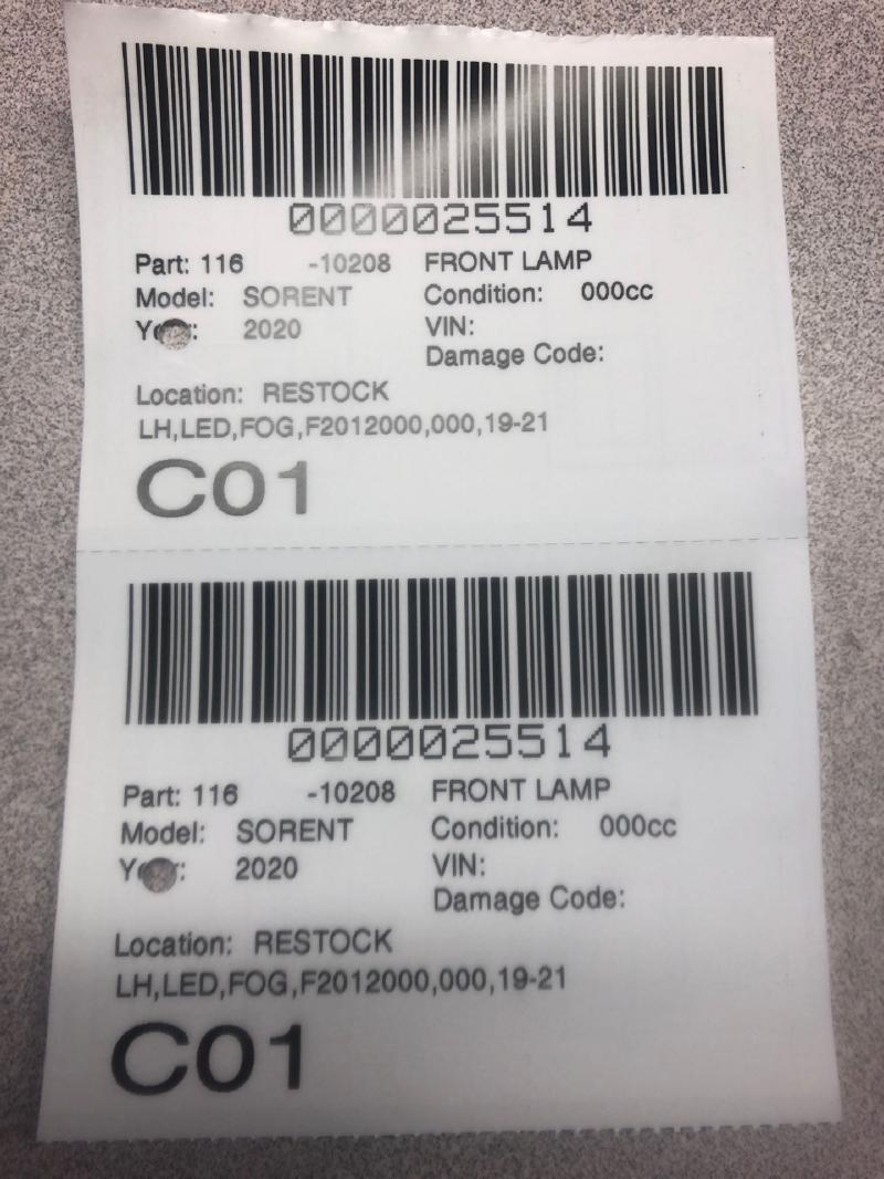 KIA SORENTO 2019 2020 Fog-driving, LED, L. Part:116 Front Lamp LH,LED,FOG,F2012000,000,19-21